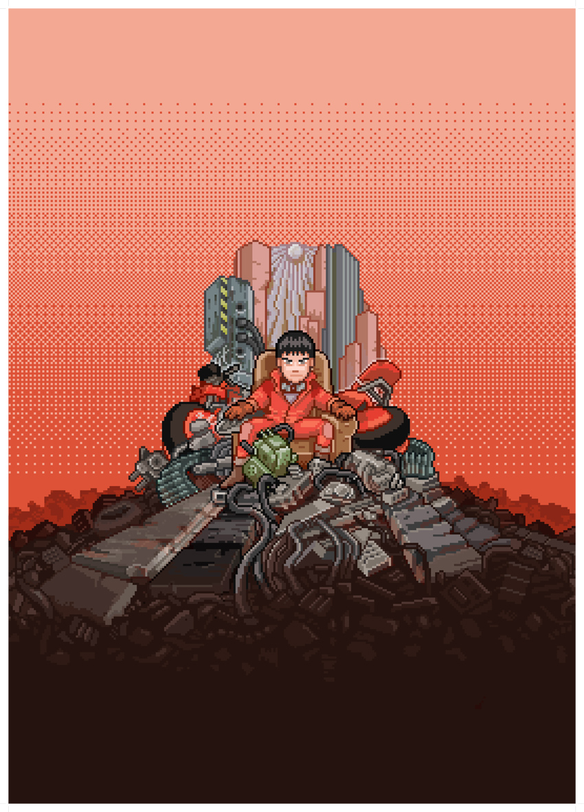 Ahogy Tetsuo lassan megtapasztalja az újonnan birtokába került telekinetikus képességeit, melyek szinte isteni magasságokba emelik, és amiket egyre kevésbé tud kordában tartani (végül szó szerint isteni magasságokba, ahogy minden idők egyik legzavarbaejtőbb befejezésében, Tetsuo ereje teljes kontrolljában beindít egy ősrobbanást, valahol egy párhuzamos univerzumban. “Tetsuo vagyok.”), társai és orvosai ráébrednek, hogy ha el akarják kerülni a katasztrófát, Tetsuot valahogy meg kell fékezni, vagy megismétlődik, ami Akirával, egy hasonlóan erős alannyal történt évekkel ezelőtt. Eközben a motoros banda vezére, Kaneda (az ikonikus poszteren a vörös motorral), barátja kiszabadítására indul.