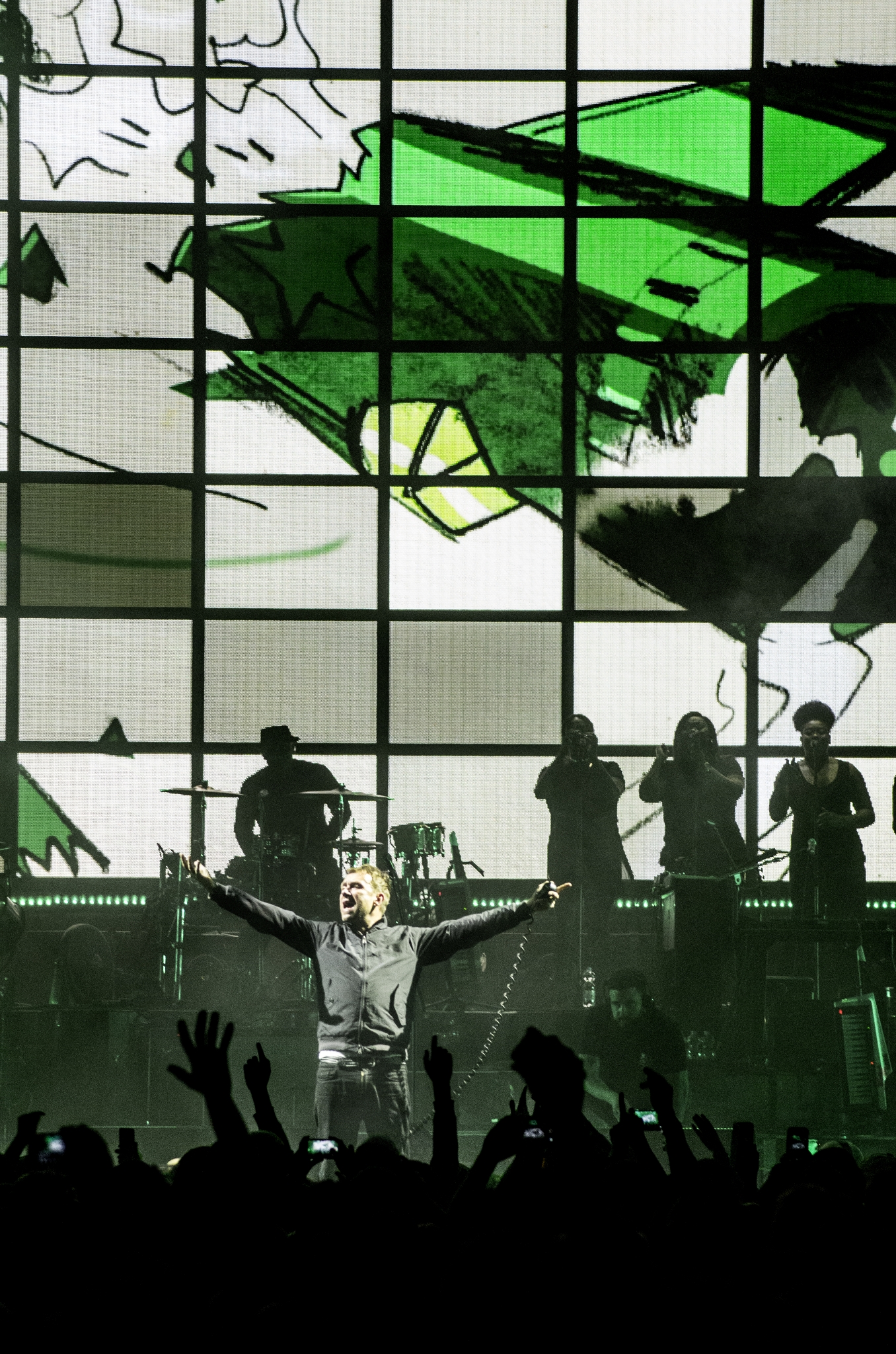 A Gorillaz virtuális figurái, vagyis Murdoc Niccals (basszusgitár), Noodle (gitár), Russel Hobbs (dob) és 2D (ének), élő zenekarral egészültek ki, és itt volt a zenei ötletgazda, Damon Albarn, Gabriel Wallace, Mike Smith, Jesse Hackett, Jeff Wootton, Karl Vanden Bossche és Seye Adelekan is. A koncerten a Corn&Soda magazin is ott járt, és fotósunk gyönyörű képeket készített.