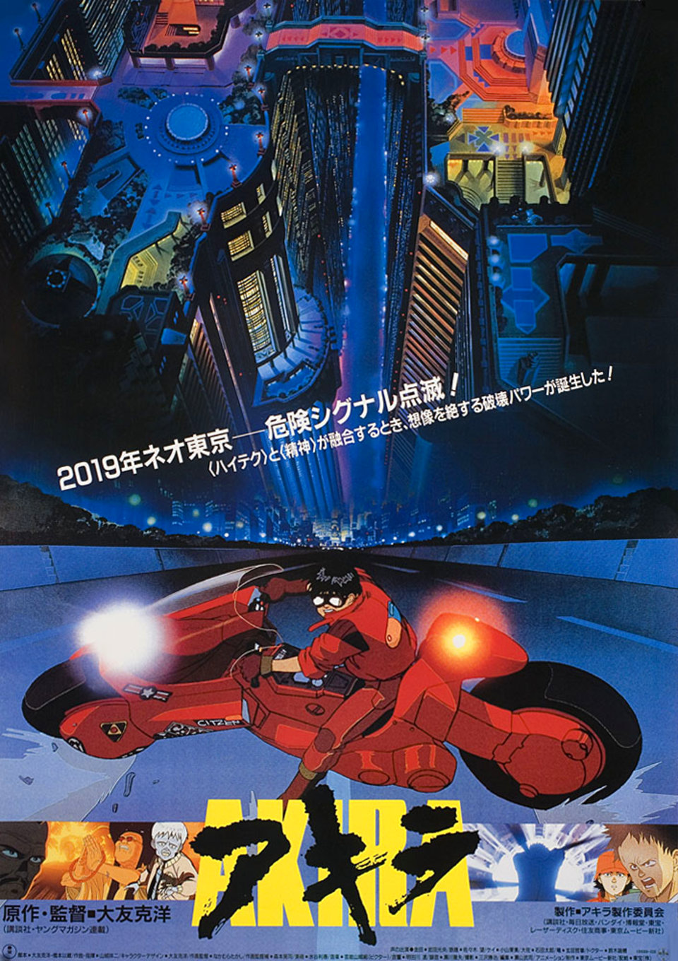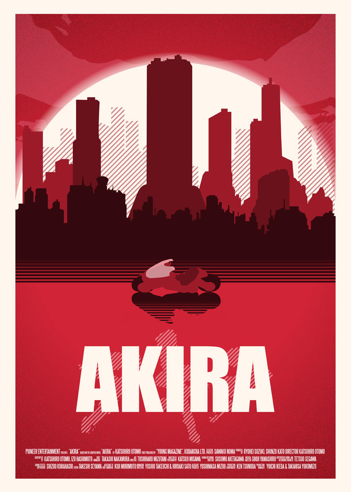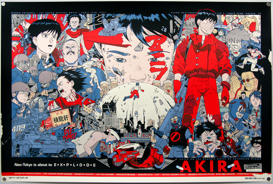A film rendezője, Katsuhiro Otomo, a saját mangájából készítette el az Akirát, mely a japán képregény csak egy kis szeletét sűríti magába. Otomo 1984 és 1993 között hat vaskos kötetben jelentette meg a sztorit teljes terjedelmében, de mikor nem jutott dűlőre a befejezést illetően, hosszasan beszélgetett a Chilében született rendezővel, Alejandro Jodorowskyval, aki végül meghozta az ihletet. Érdekesség, hogy ez volt az első manga, amit lefordítottak és megjelentettek nyugaton. A belőle készült animáció 2019-ben játszódik, pont abban az évben, amikor a Szárnyas Fejvadász (Blade Runner, 1982) története is – ez persze nem véletlen. Otomo hatalmas inspirációként tekintett Ridley Scott klasszikusára. Az az épülő stadion, ahol a végső katartikus jelenet játszódik, a film szerint egy leendő japán olimpiára készül. Furcsa egybeesés, hogy a valóságban japán van előjegyezve a 2020-as olimpia megrendezésére. A film színezése során rekordszámú, háromszázhuszonhét különféle színt alkalmaztak, amihez még hozzájött plusz ötven, amit direkt ehhez a produkcióhoz kevertek ki a grafikusok, akik az egész film animálás során teljes egészében CGI nélkül, kézzel dolgoztak. Alább egy kis poszter válogatás galériába szedve, érdemes belenézni:
